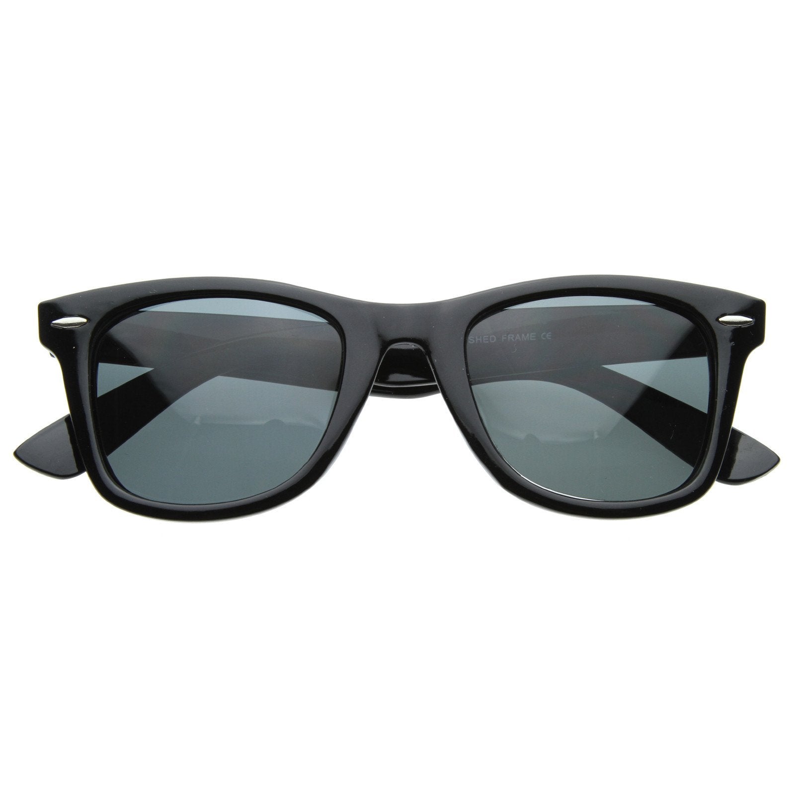 - A medium version of the timeless classic horned rim frame that offers style and superior protection with polarized lenses. Enjoy all your daily activities in full clarity by effectively reducing glare with polarized sunglasses. Made with an acetate based frame, metal hinges, and polycarbonate polarized lenses.