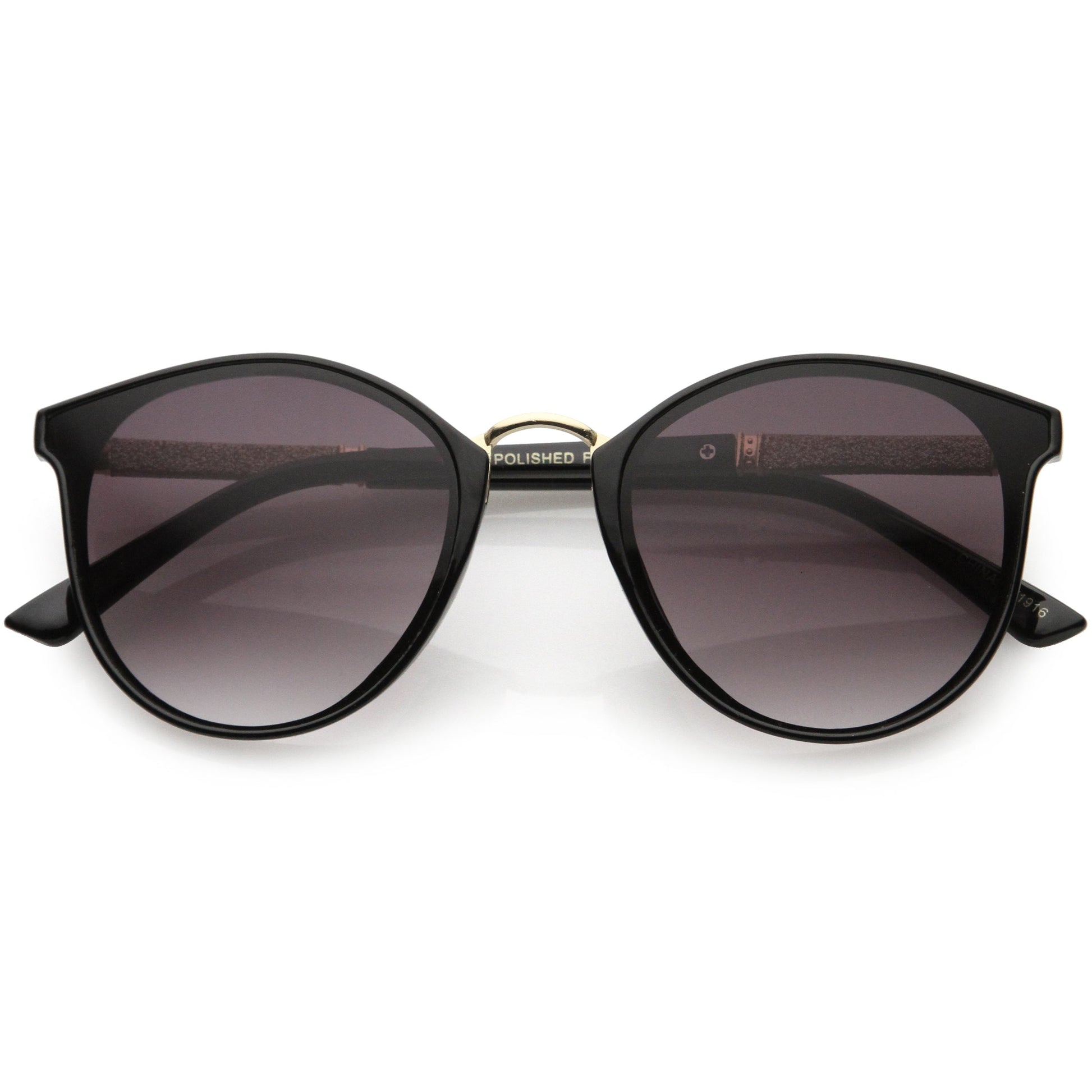 Flirty Two-Tone Glitter Arms Accent Chic Cat Eye P3 Round Sunglasses D037