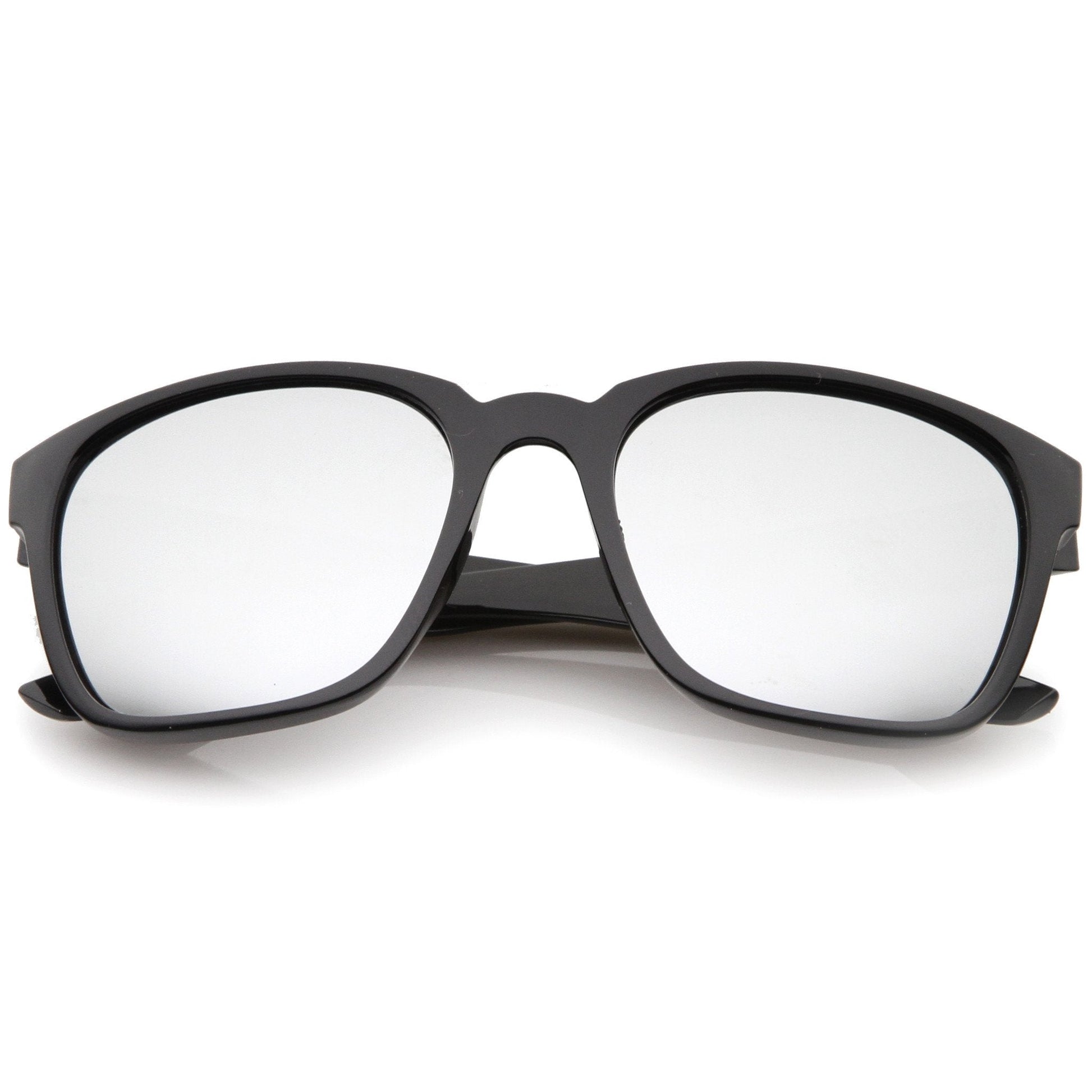 - A refreshing take on the iconic horn rimmed frame, these action sports sunglasses are designed with square color mirror lenses for a stunning effect. Stylishly wide temples that sit high on the frame complete this versatile and updated style. Wear it with your favorite outfits for an attention grabbing ensemble that's perfect for the sunny season. Made with a plastic based frame, reinforced metal hinges, and reflective UV400 polycarbonate lenses.