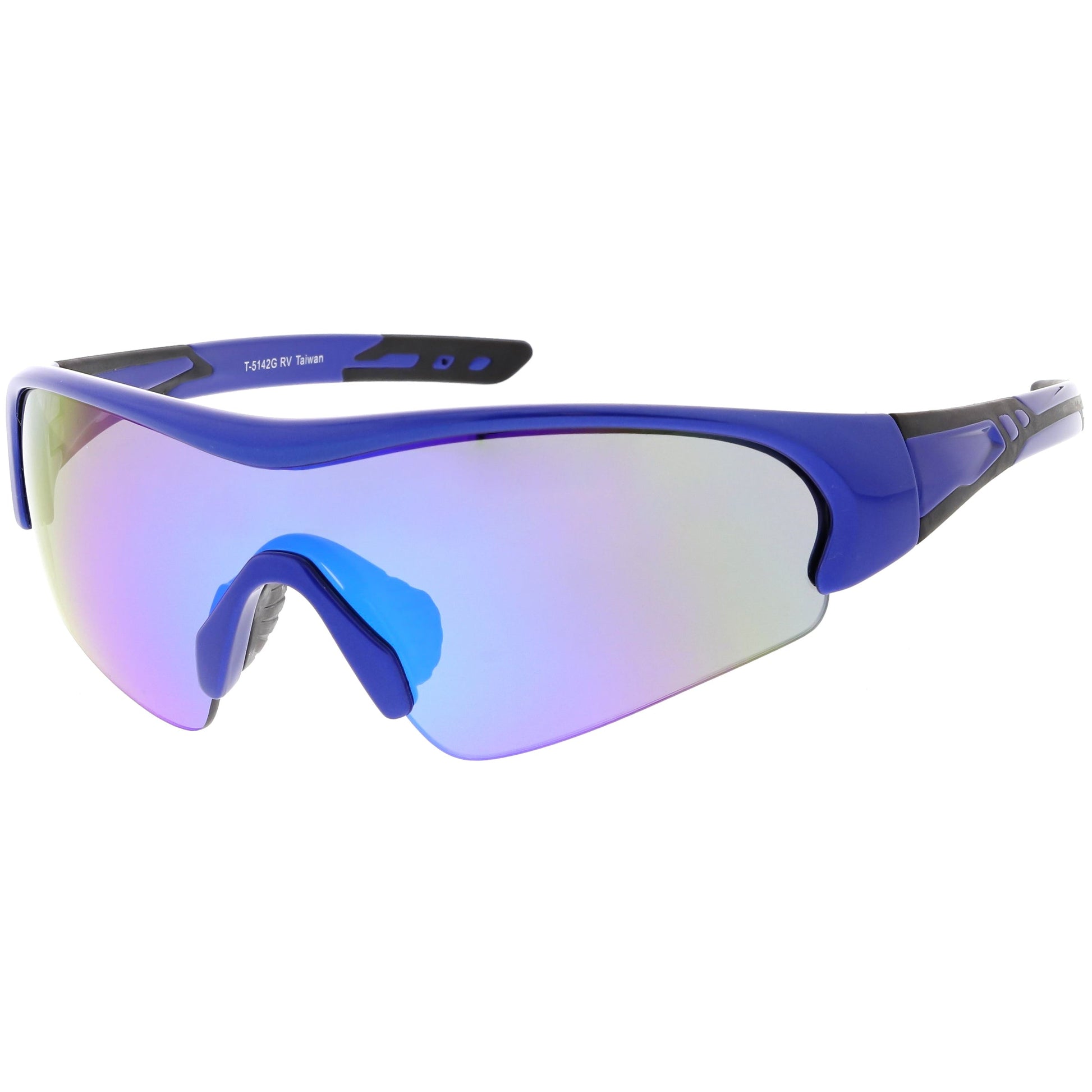 - A bold design that provides maximum UV protection and coverage with its slightly taller lenses and semi-rimless design, these sports shield sunglasses are crafted with durable TR-90 technology and a wrap design for a better fit. Complete with non-slip silicon nose pieces and injected mold temple grips to keep the sunglasses in place, these colored mirror mono lens sunglasses will help keep everything in view.