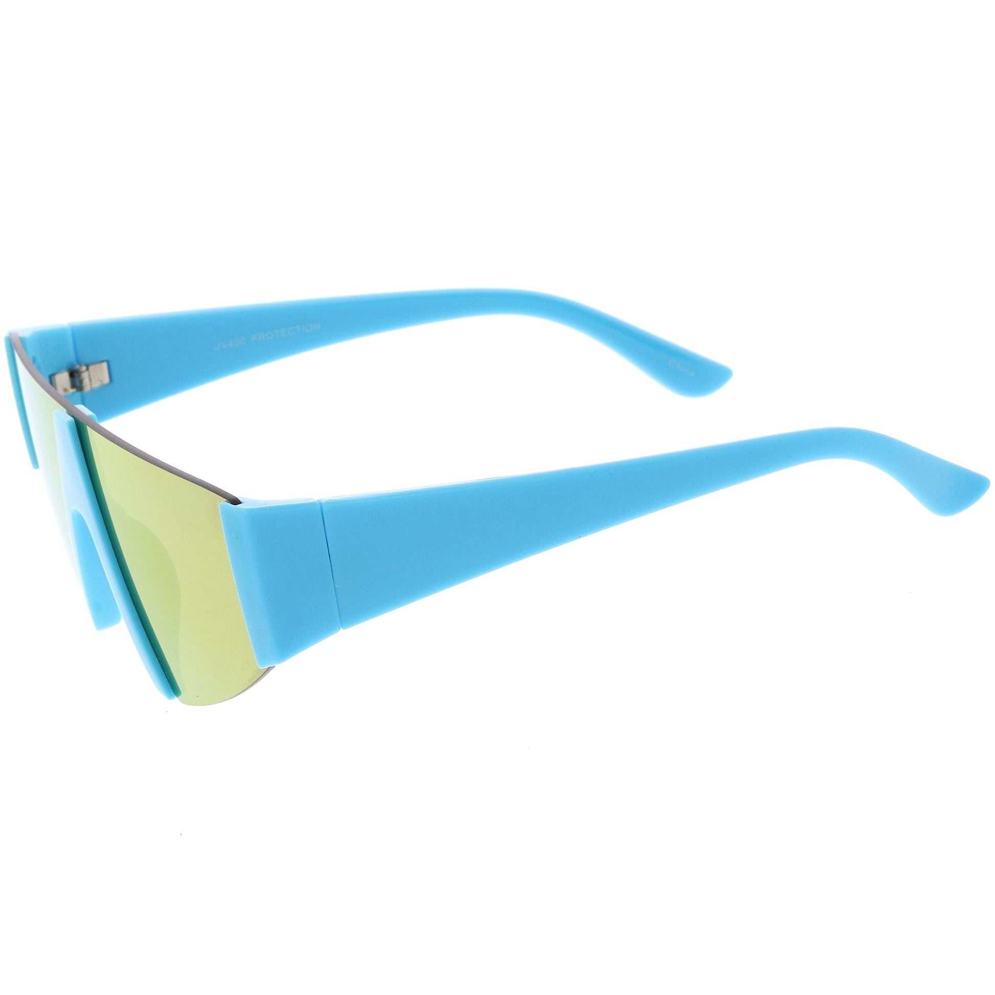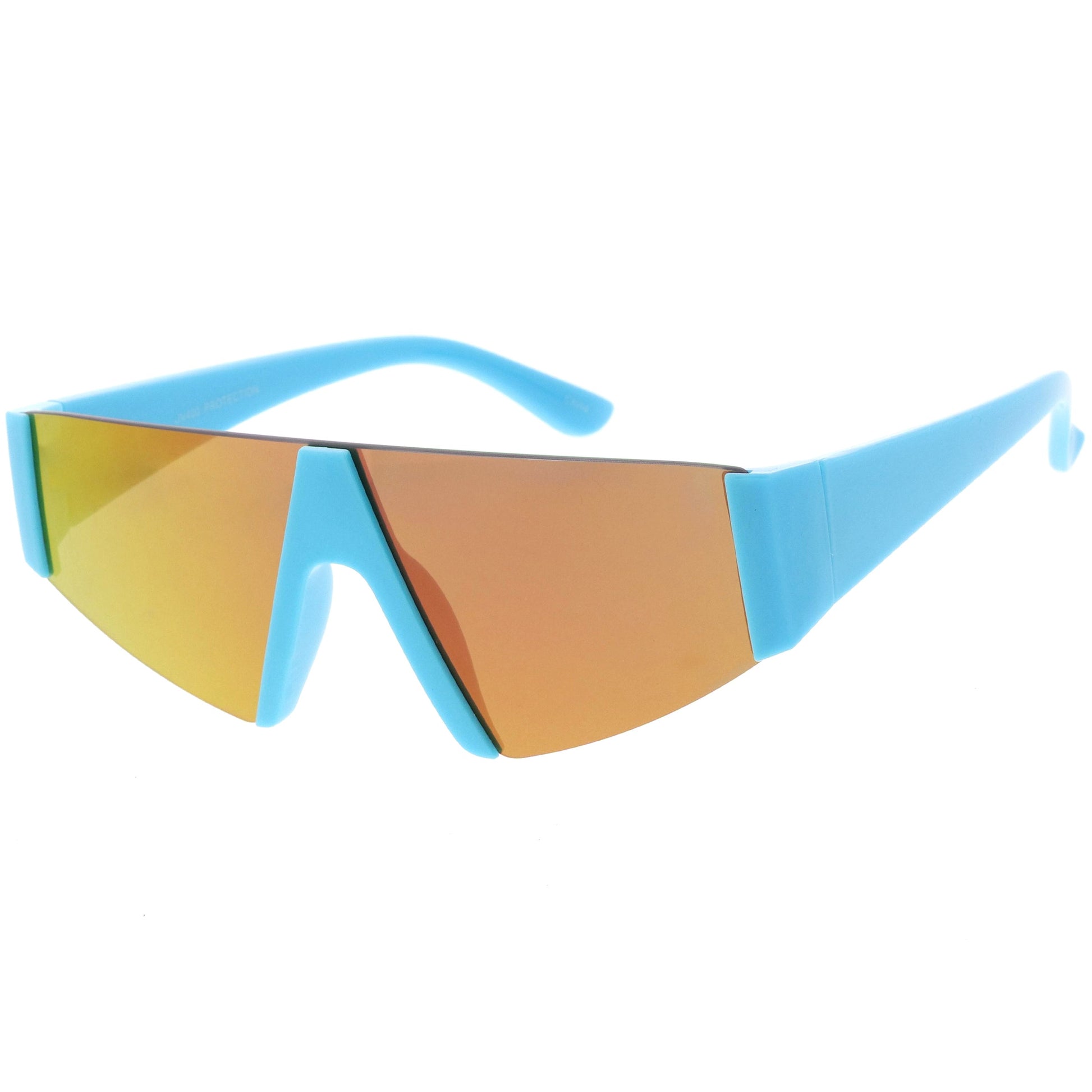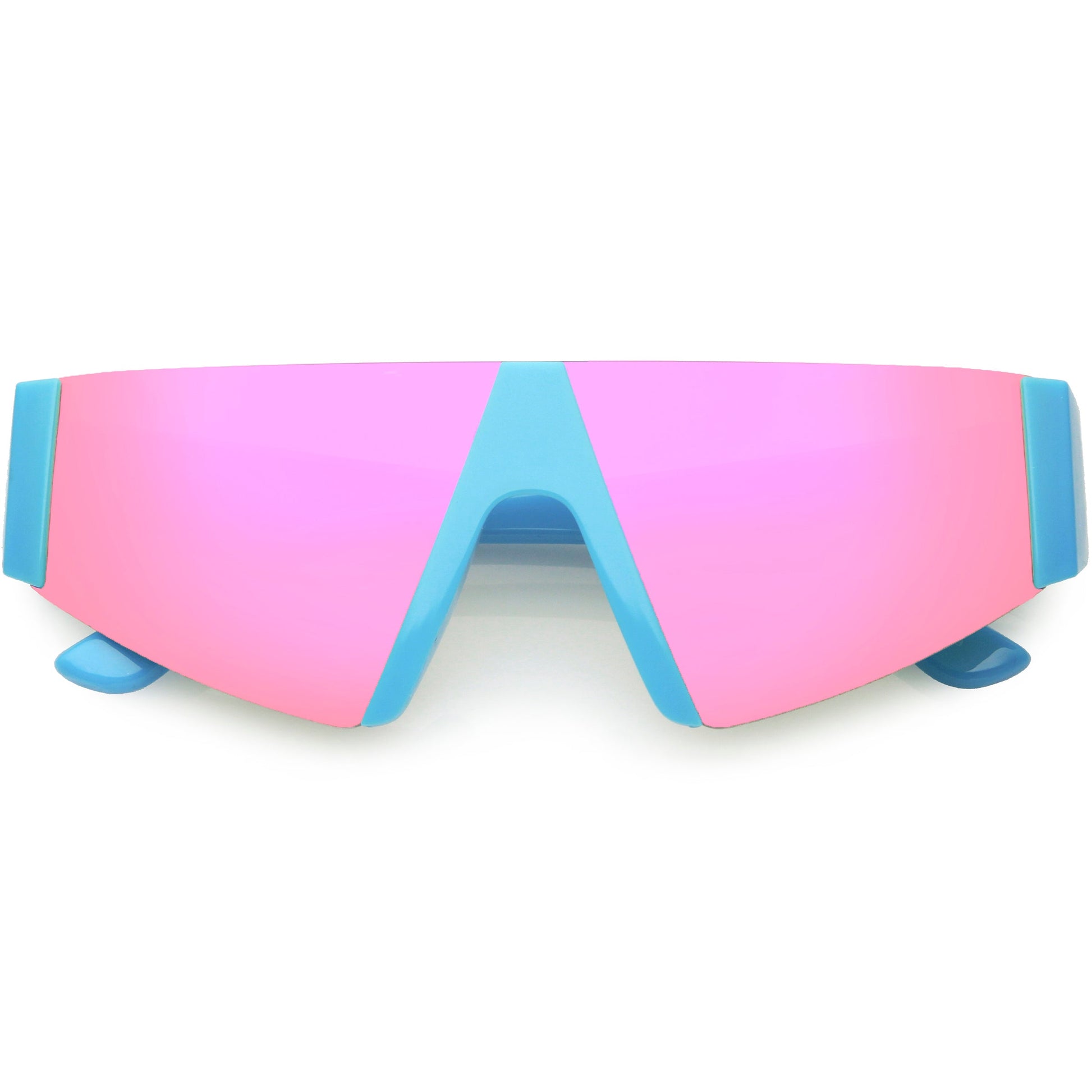 Modern Flat Top Blade Cut Color Mirrored Lens Shield Sunglasses C986