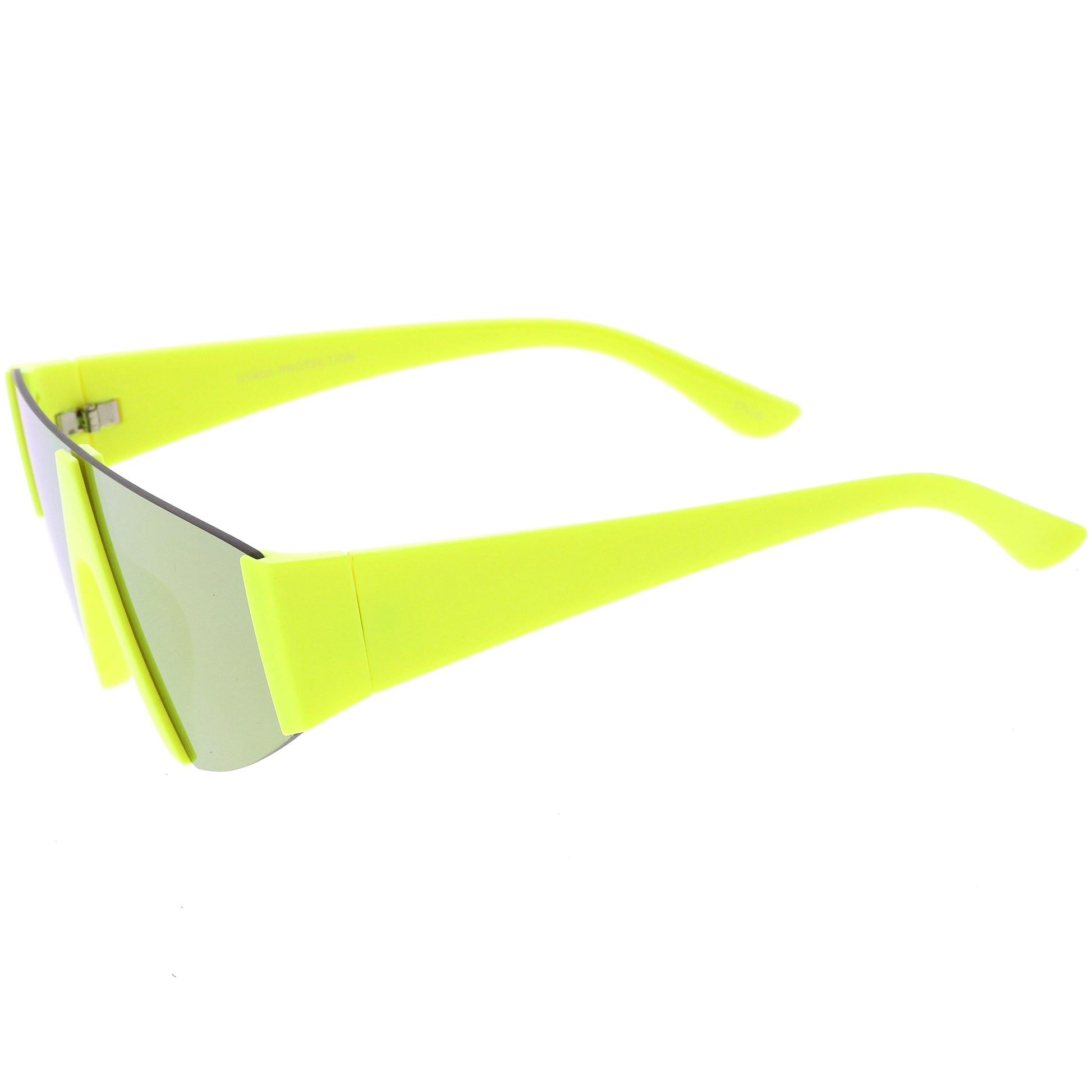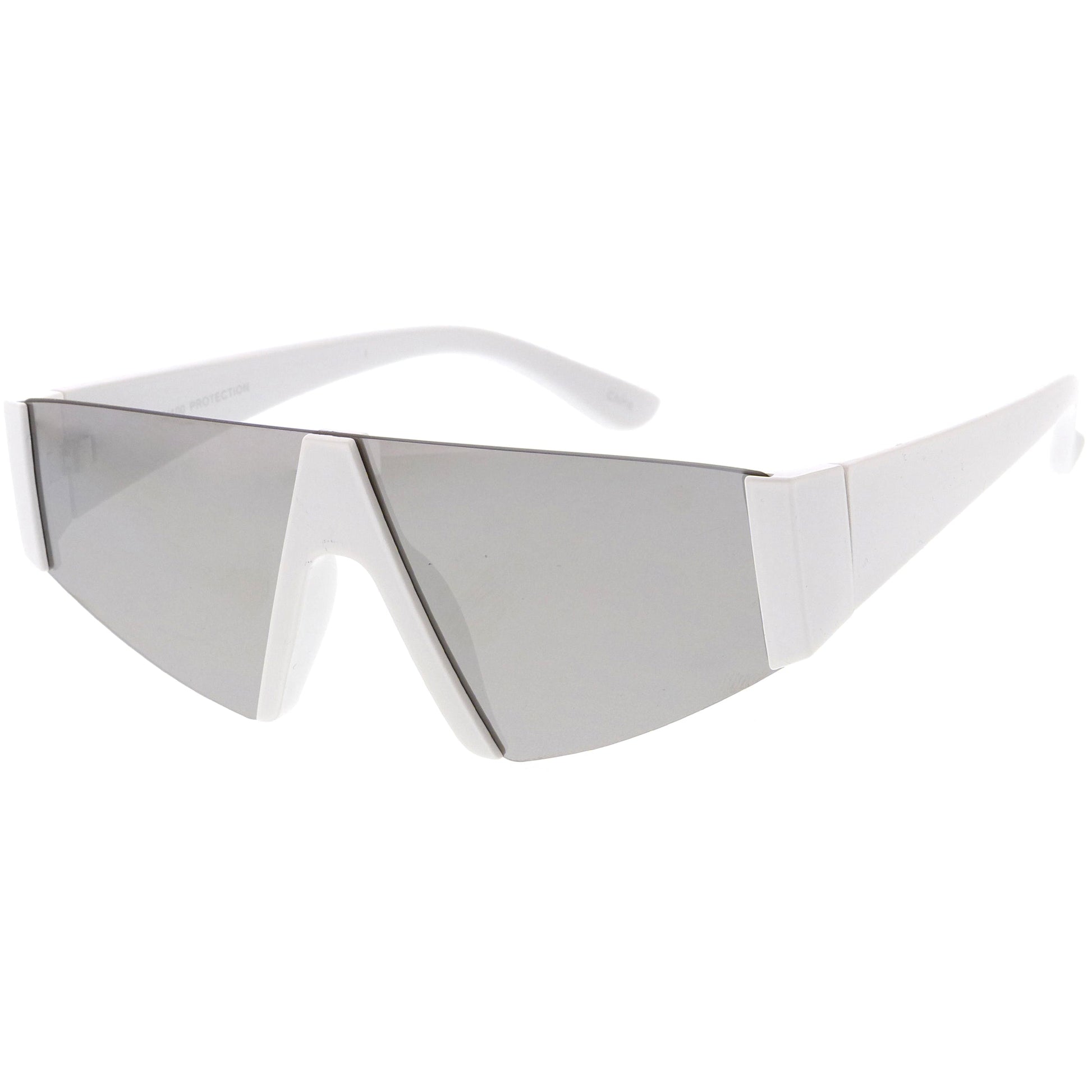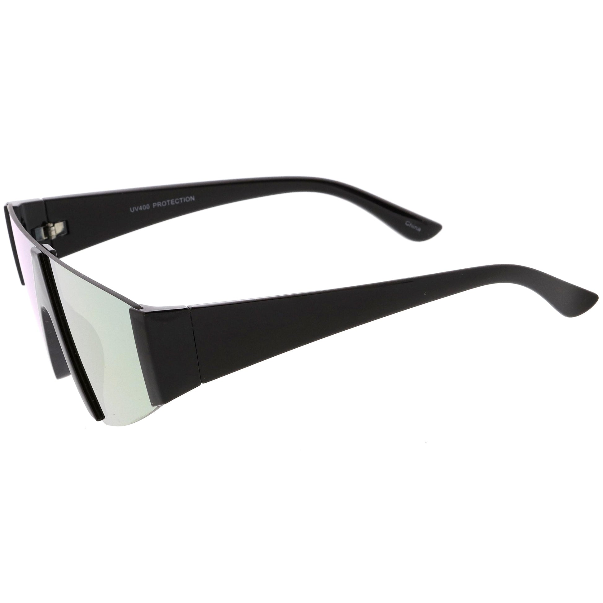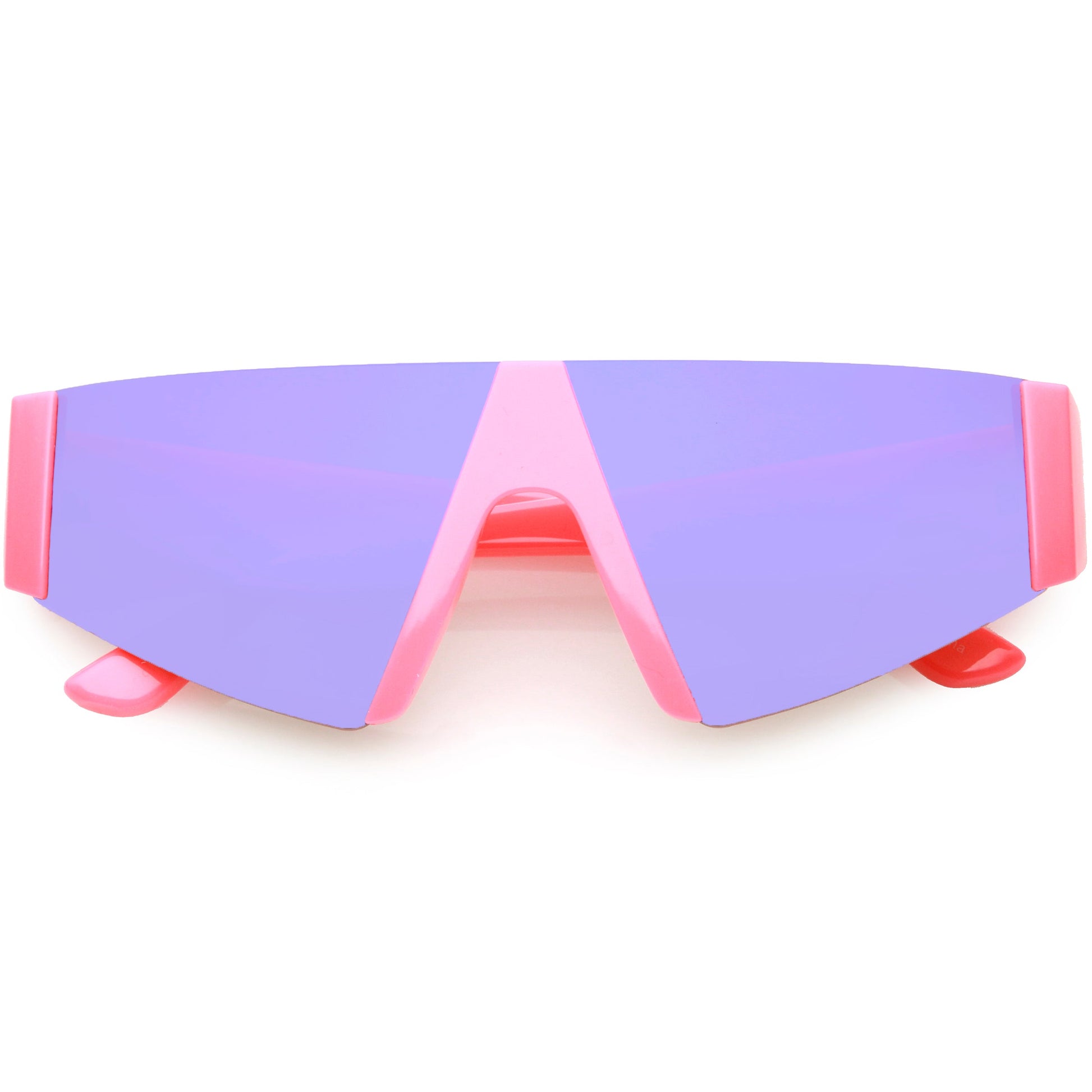 Modern Flat Top Blade Cut Color Mirrored Lens Shield Sunglasses C986