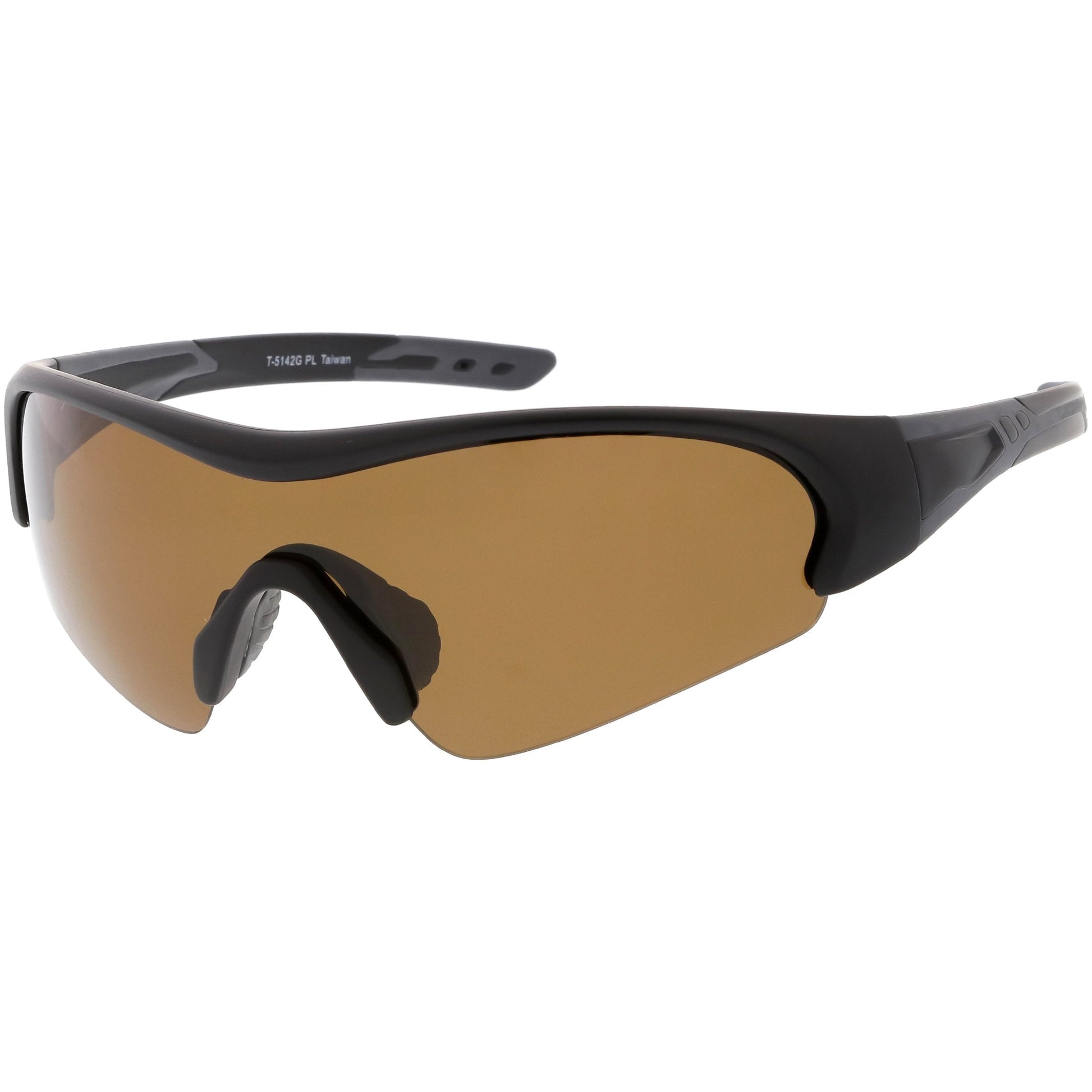 - A bold design that provides maximum UV protection and coverage with its slightly taller lenses and semi-rimless design, these sports shield sunglasses are crafted with durable TR-90 technology and a wrap design for a better fit and polarized lenses that omit glare and reduce brightness. Complete with non-slip silicon nose pieces and injected mold temple grips to keep the sunglasses in place, these colored mono lens sunglasses will help keep everything in view.