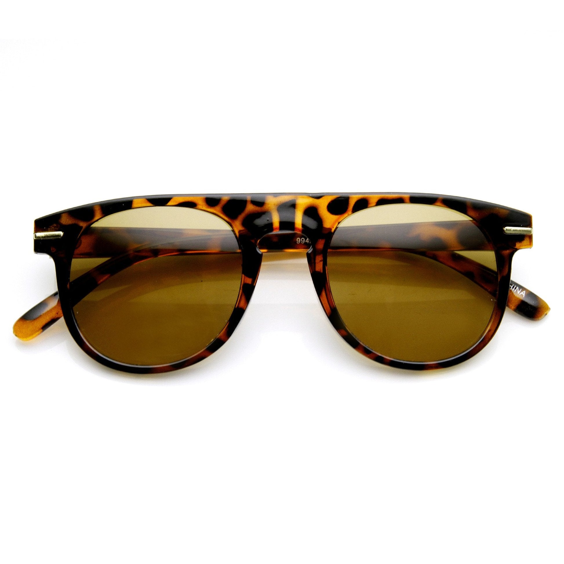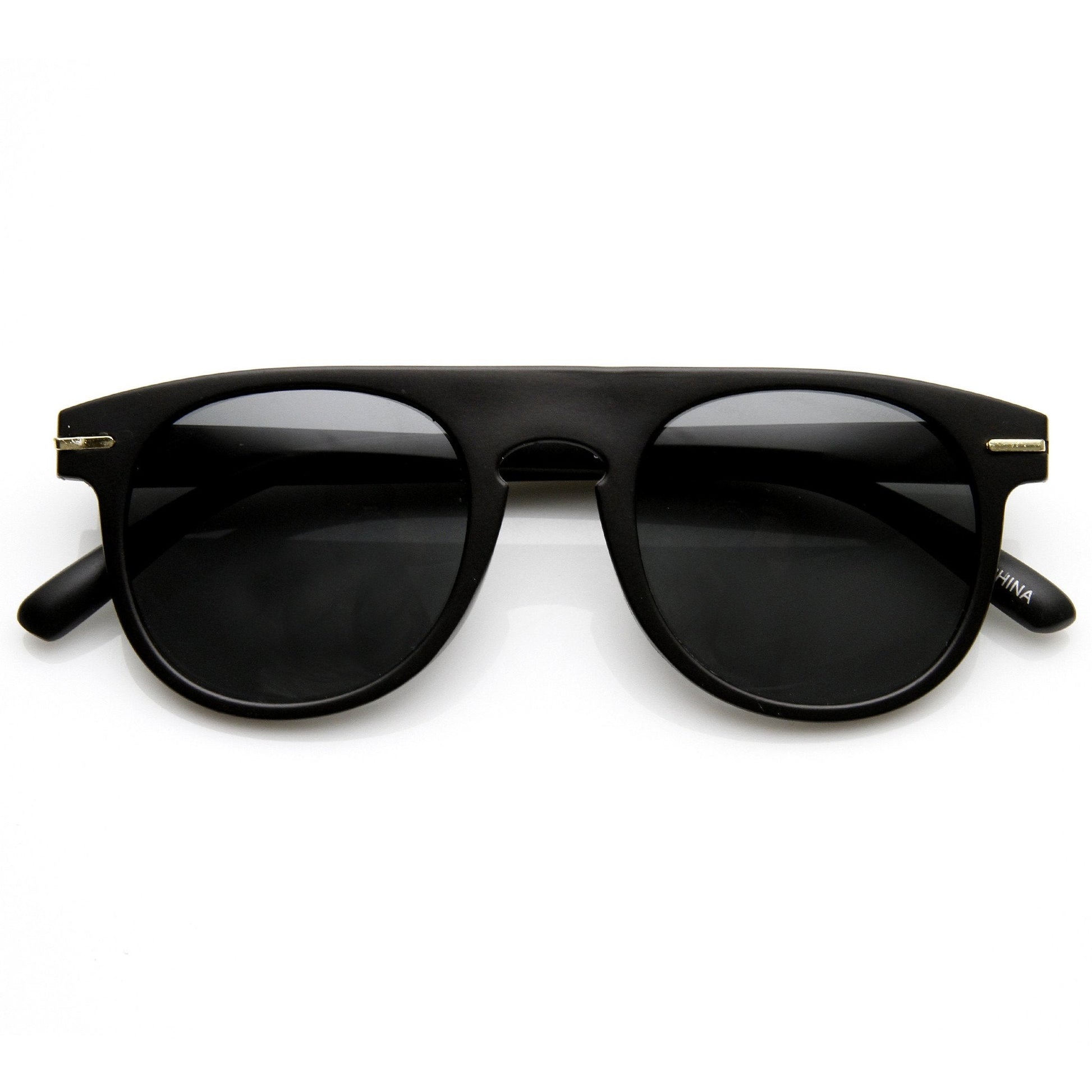 - Unique retro 70's style round P3 frame that features a bold flat top frame with horned temples and a key hole nose bridge. The retro and modern characteristics makes these shades wonderful for the warm and sunny season. Made with a plastic based frame, metal hinges and color mirror UV protected polycarbonate lens.