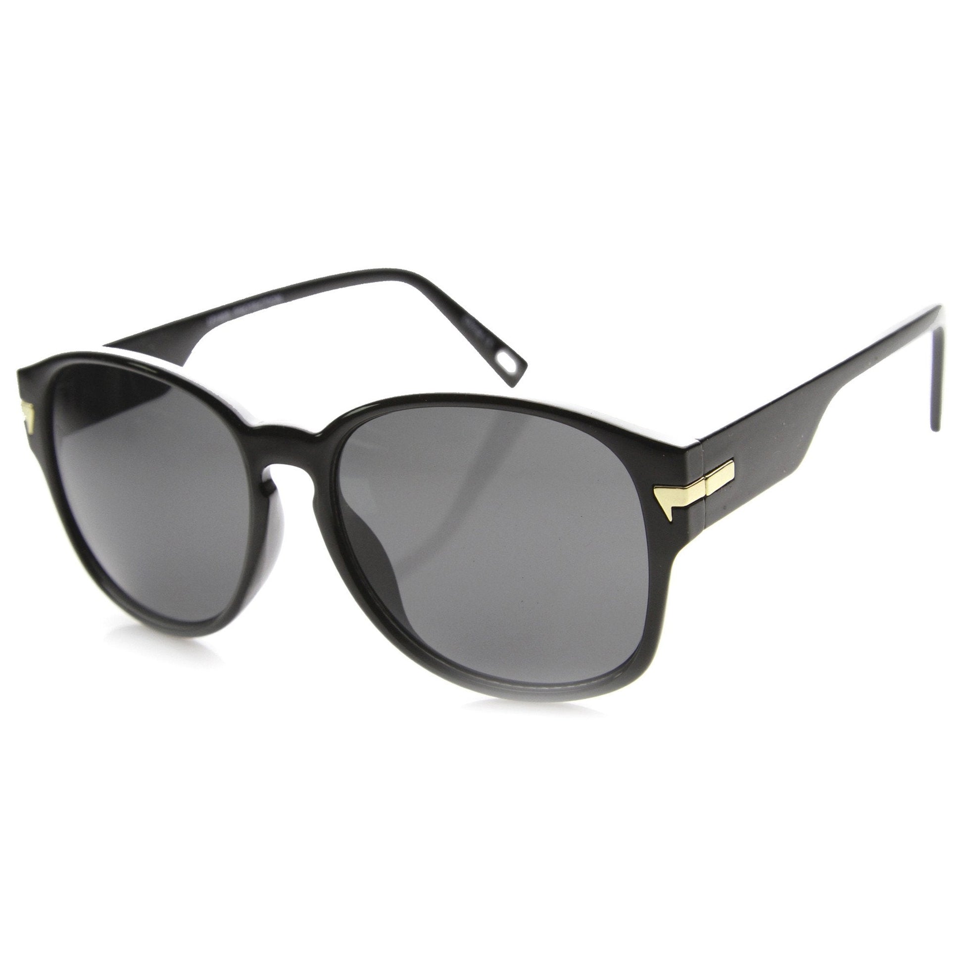 - Stylish yet subtle medium frame with elegant metal accents at the temples and soft squared curves. Beautiful easy to wear style if you looking for something that speaks fashion but isn't too oversize. Made with an acetate based frame, metal hinges and UV protected polycarbonate lenses.